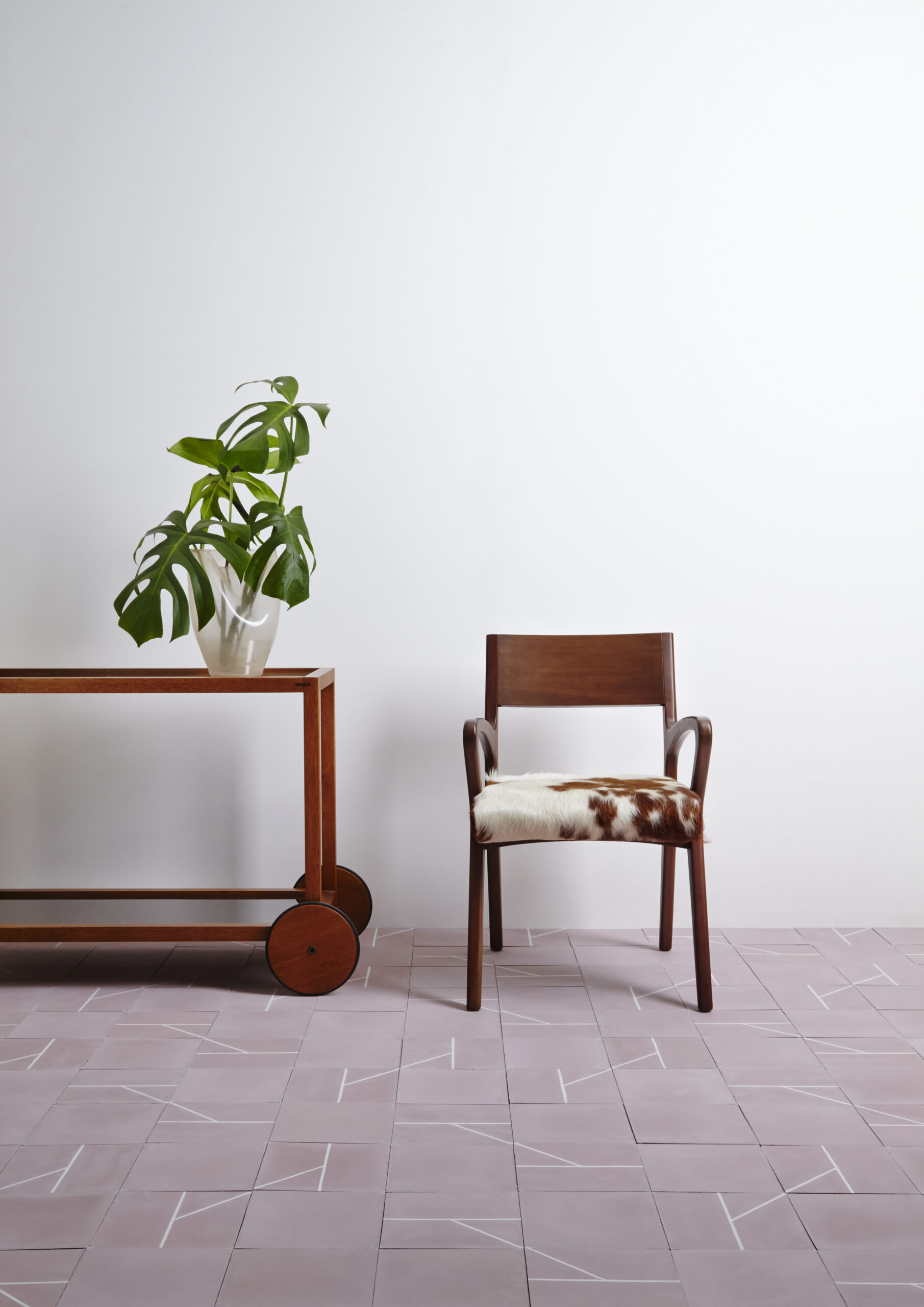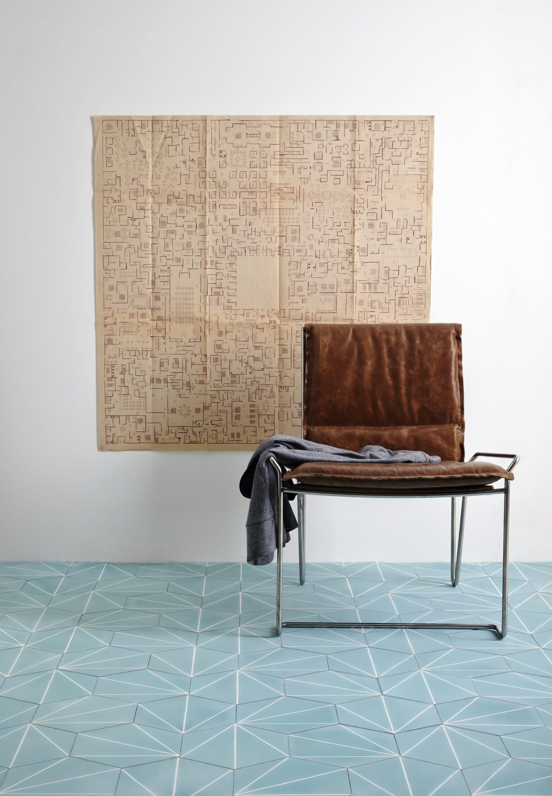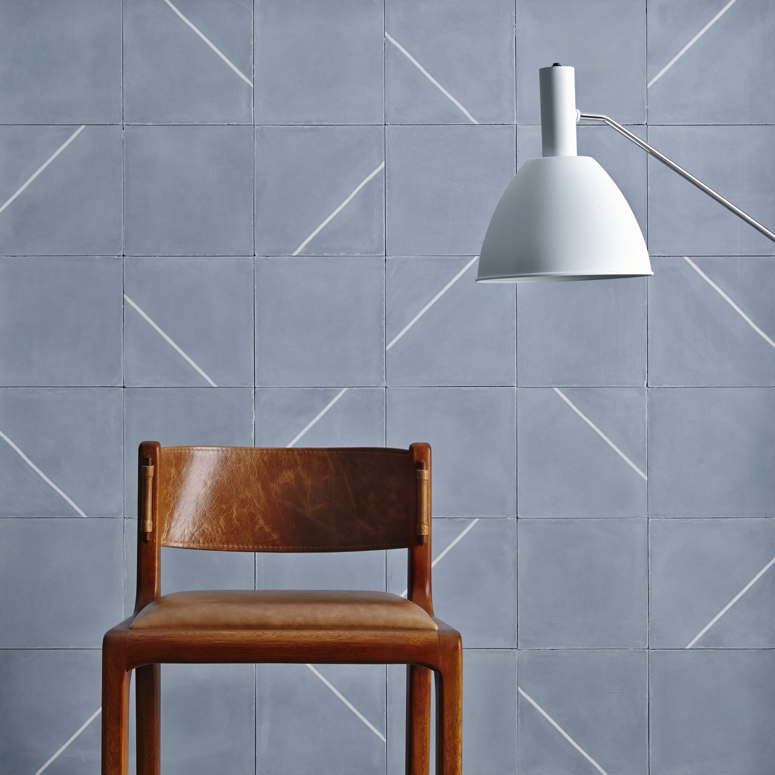 The principle behind the four different patterns, linha, triângulo, trapézio and rizoma is the use of straight lines arranged in a simple manner alongside tiles of continuous color. This allows for a great variety of possible combinations, using the minimalistic geometry of each design to create new compositions with a degree of intricacy appropriate to each project.
