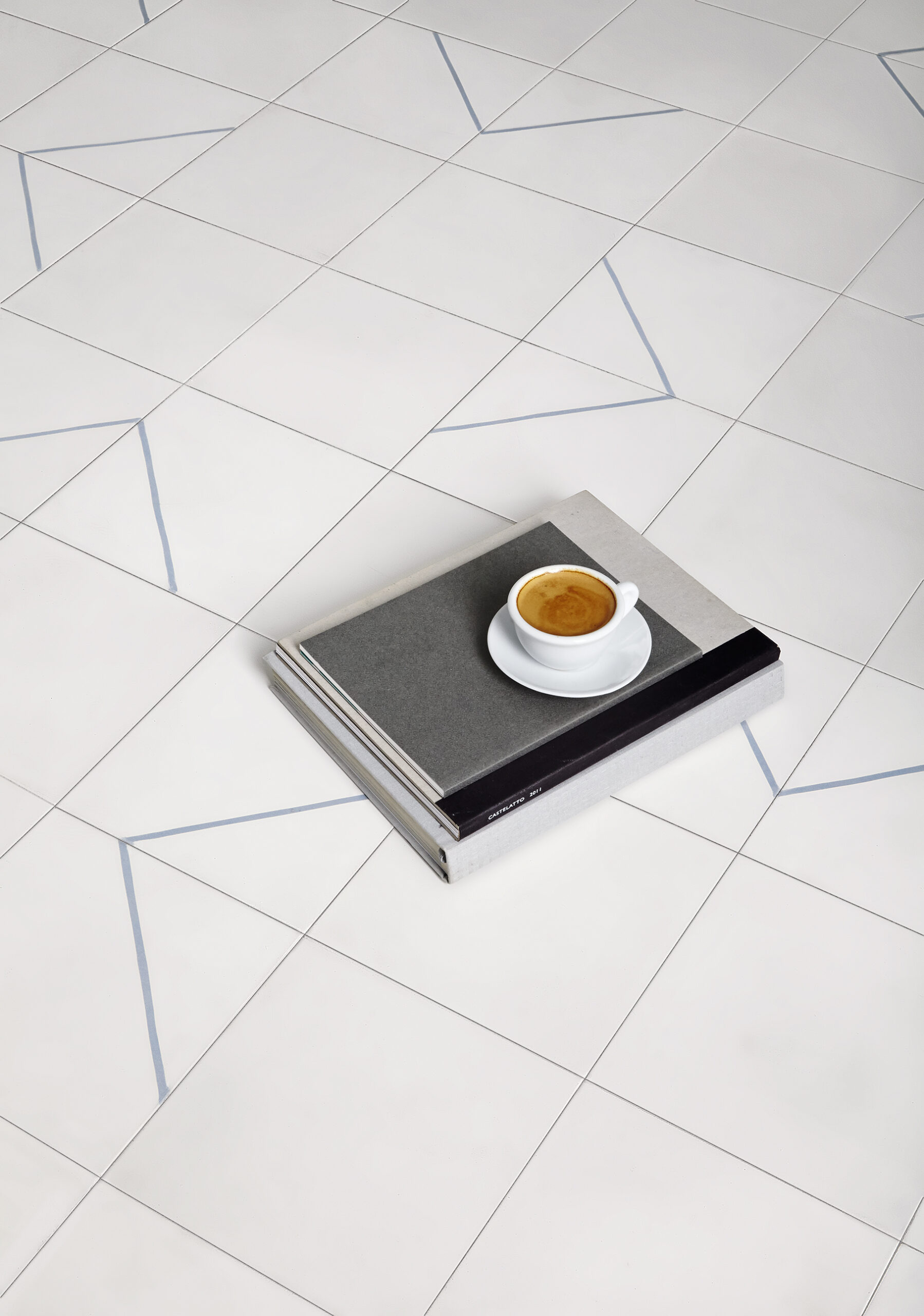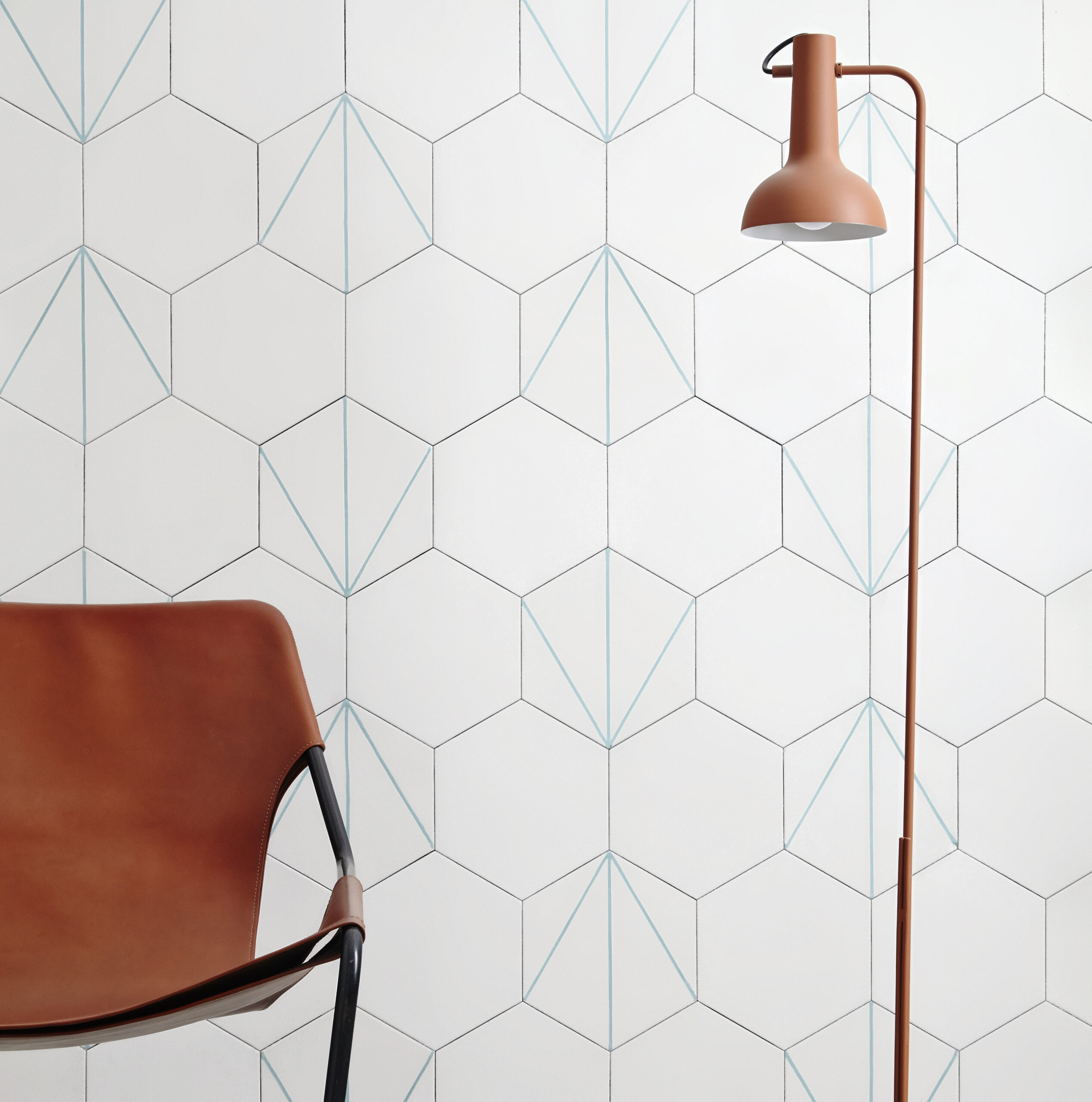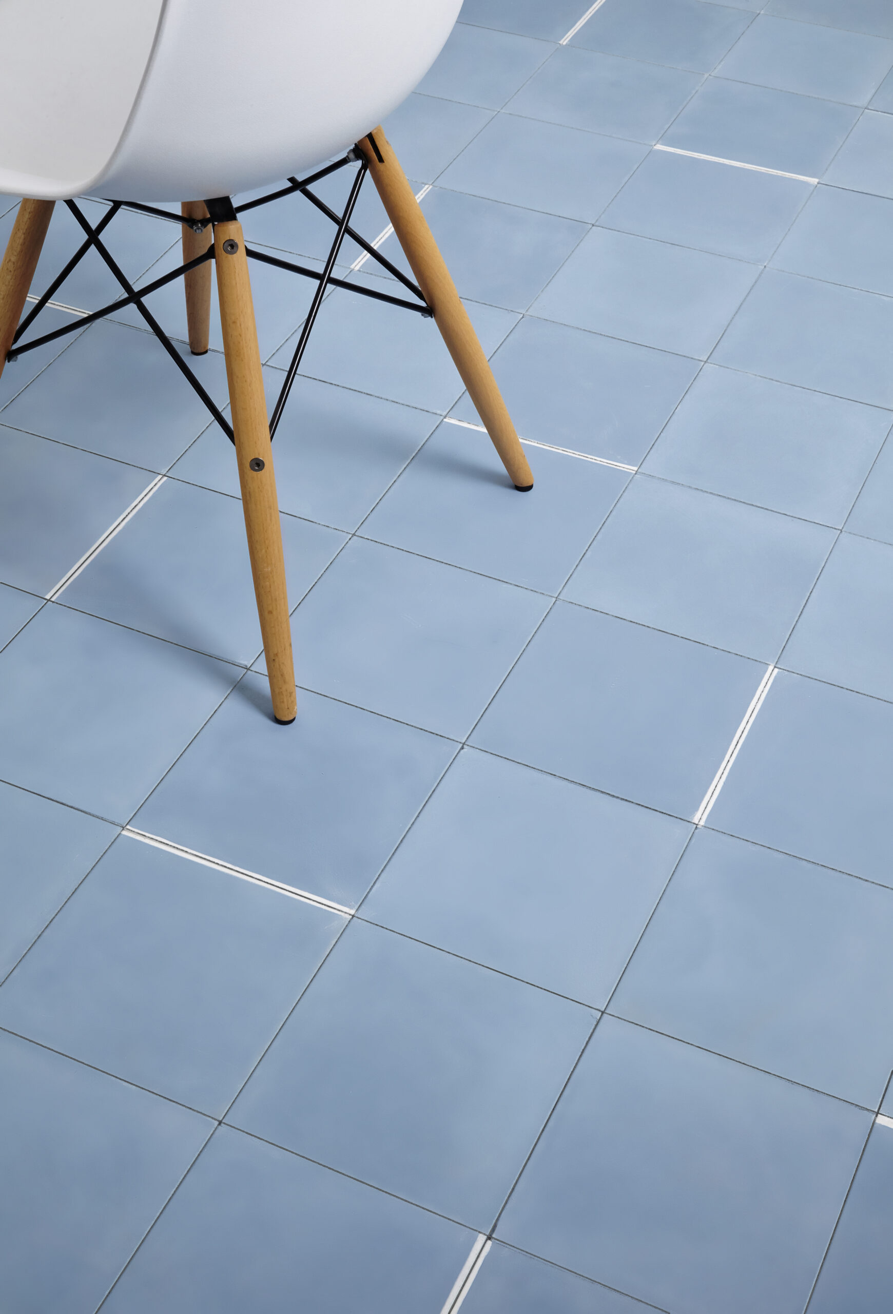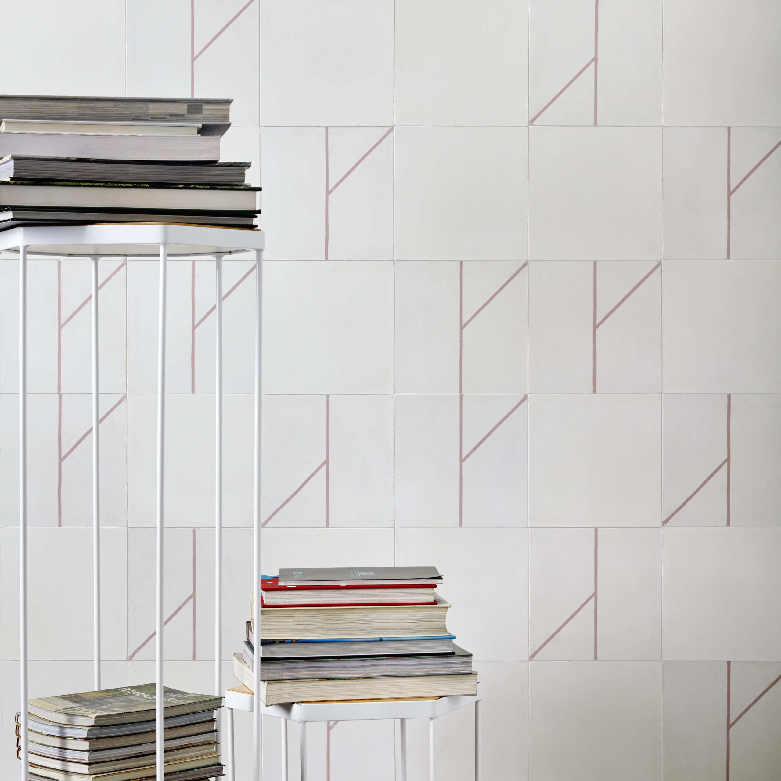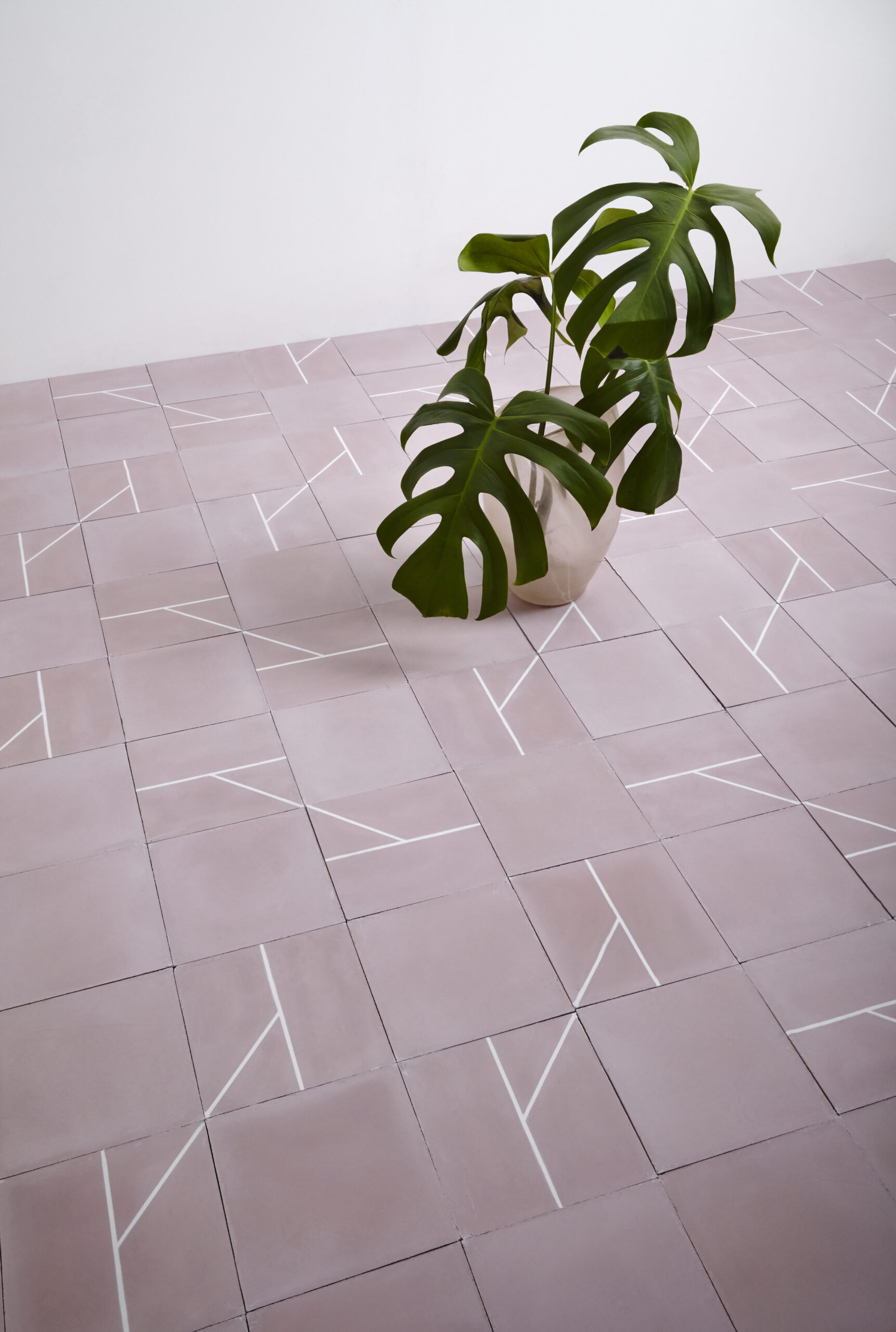 The four designs are all a mixture of frost white with one of nine colors developed especially for this collection. All of these colours come in a distinctive matte finish that is unique to the traditional craft of encaustic cement tiles. The figure-ground relationship – either colored lines on a white background or it’s opposite – will also depend on the desired effect for a given environment. The use of soft colors with less contrast makes for discrete and luminous, light-reflecting surfaces that combine well with many types of furniture or carpet without a conflict of color or texture.