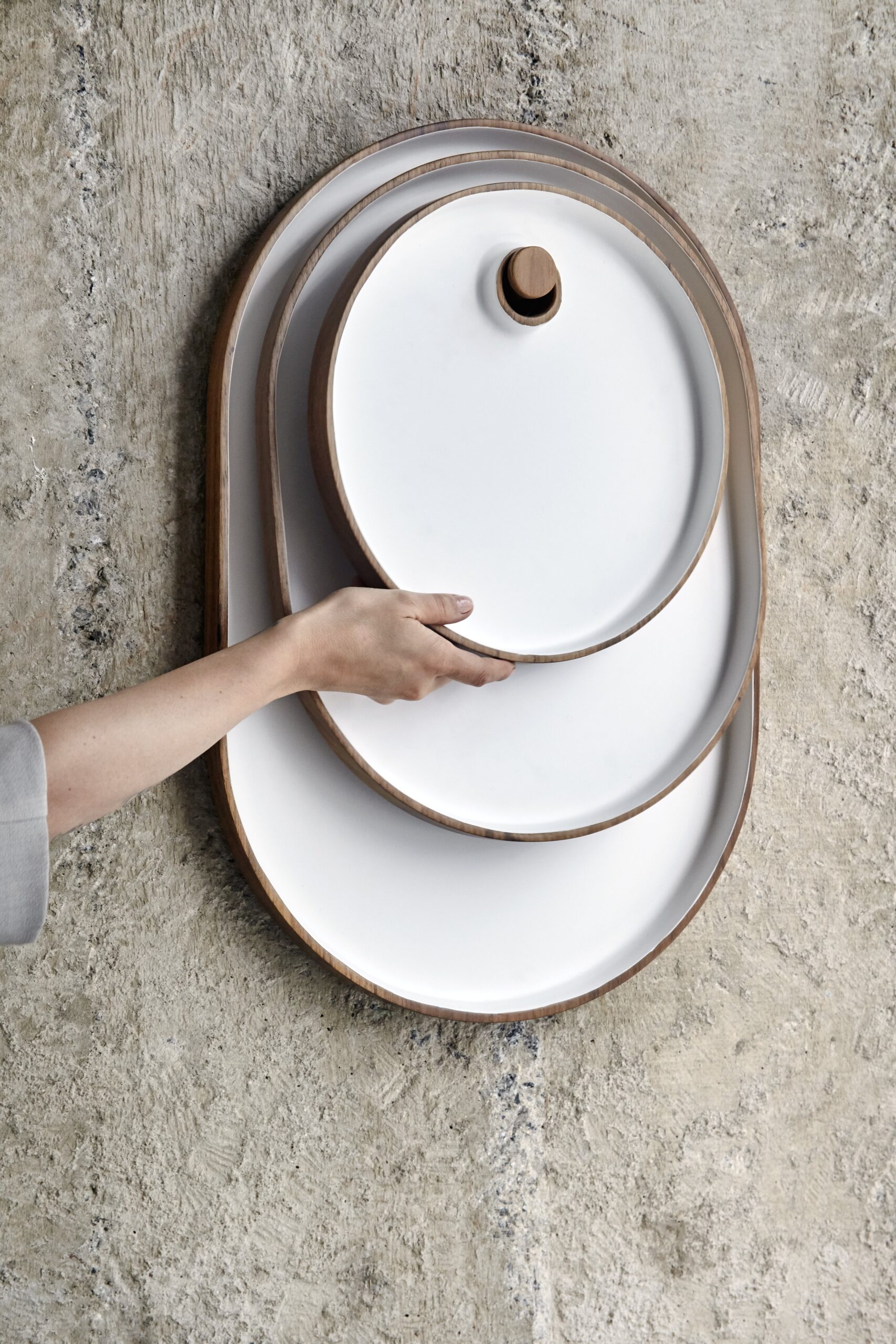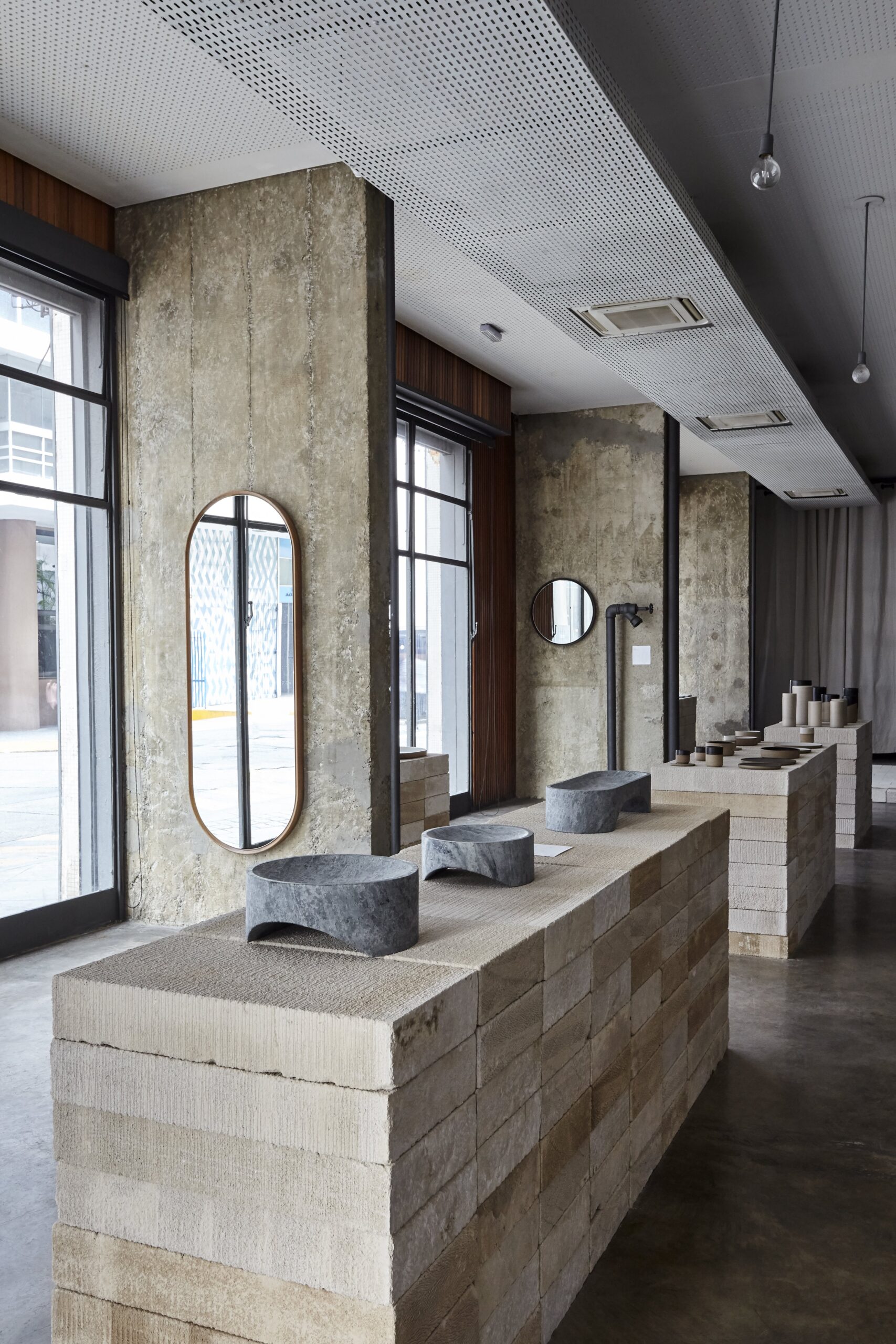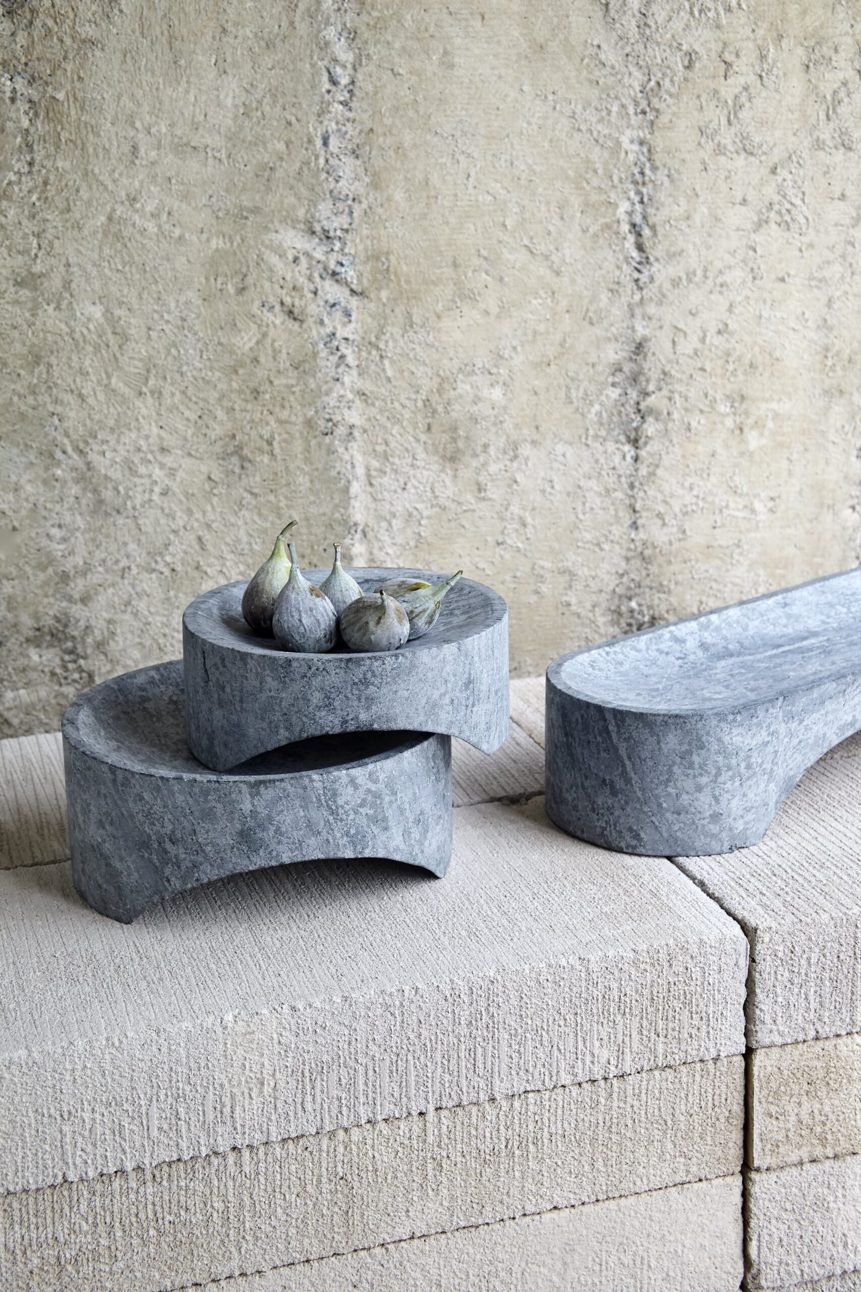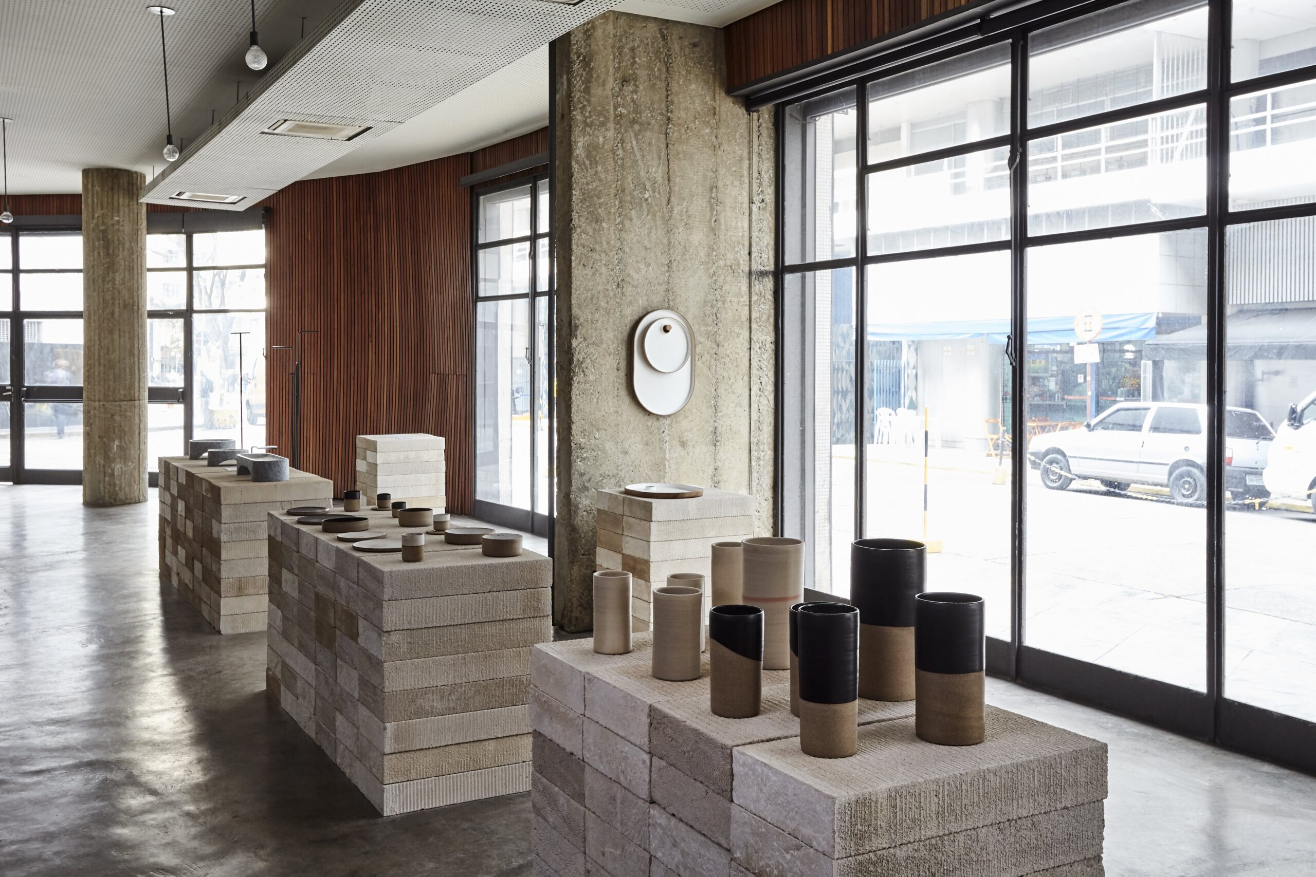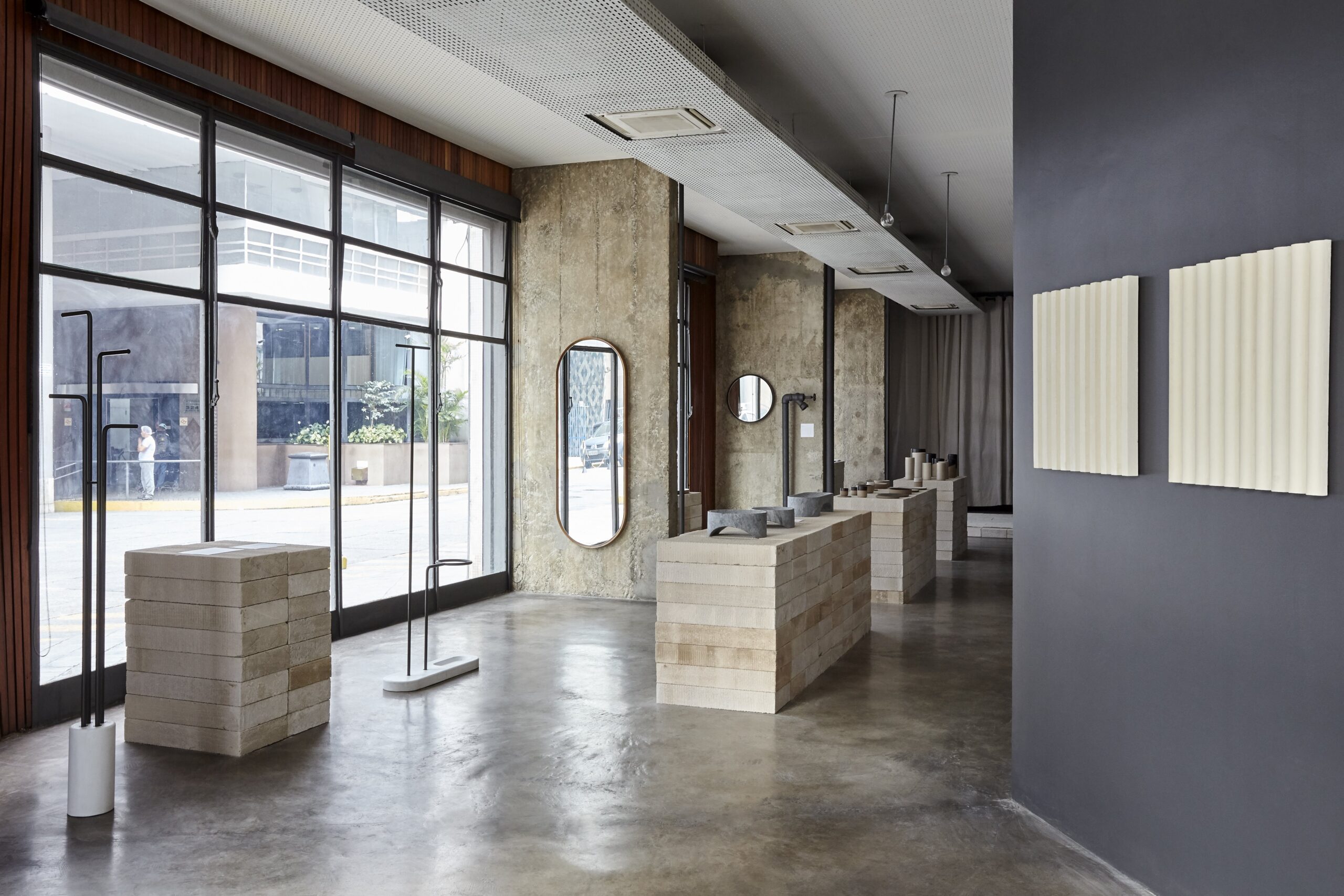 The prototypes on display here – enameled ceramic vases and tableware, soapstone fruit plants, concrete wallcovering, coat racks, mirrors, among other objects, join a line of hydraulic tiles launched four years ago, and are the first in a new series of products that we start marketing now.